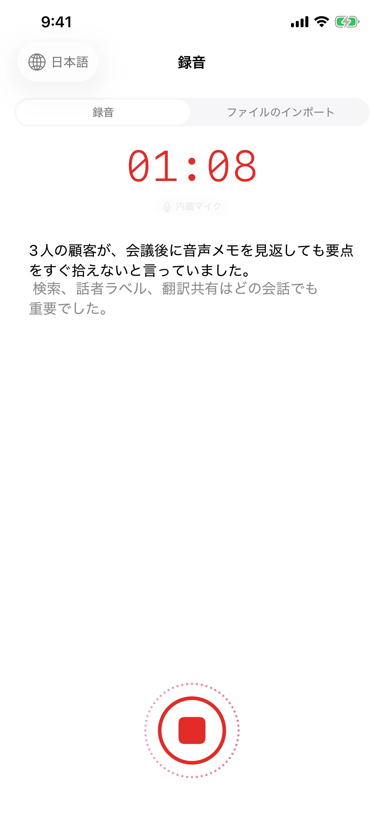 iPhone、iPad、Apple Watch、ウィジェット、Live Activity、Dynamic Island からすぐ開始。既存の音声や動画ファイルの取り込みにも対応します。